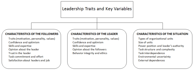 5. Several studies have shown that leadership styles and motivation are strictly related: the most motivated followers have the most motivated leaders and vice versa [27]. According to this trail, the most important factors that an organization should use in order to preserve its effectiveness and its productivity are joined to the different leadership styles. Researchers have defined numerous and different leadership styles. The “style of a person” is created through the combination of his/her beliefs, values and preferences, organizational cultures and norms (encouraging one style and, even, discouraging others). As concerns Leadership Theories, there are three main key variables that affect the leadership styles: the leader’s characteristics, the follower’s characteristics and the environment’s characteristics.